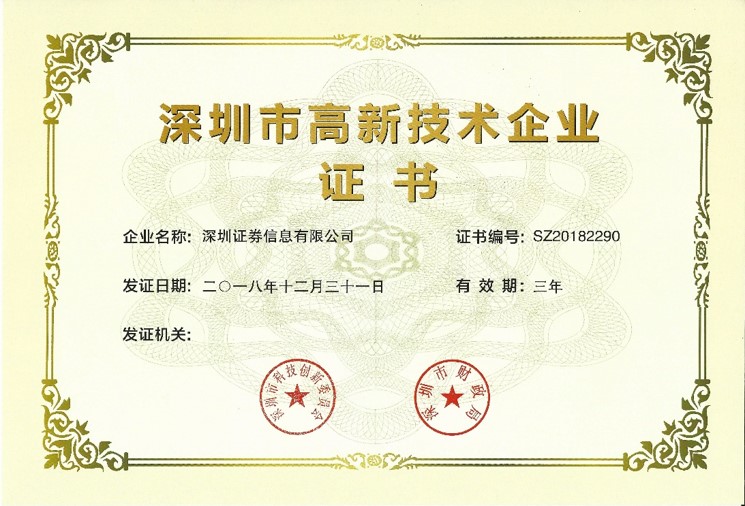 2019年6月28日,公司再次獲得“深圳市高新技術(shù)企業(yè)證書(shū)”。